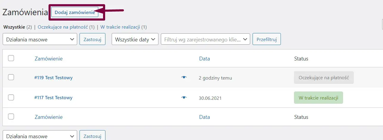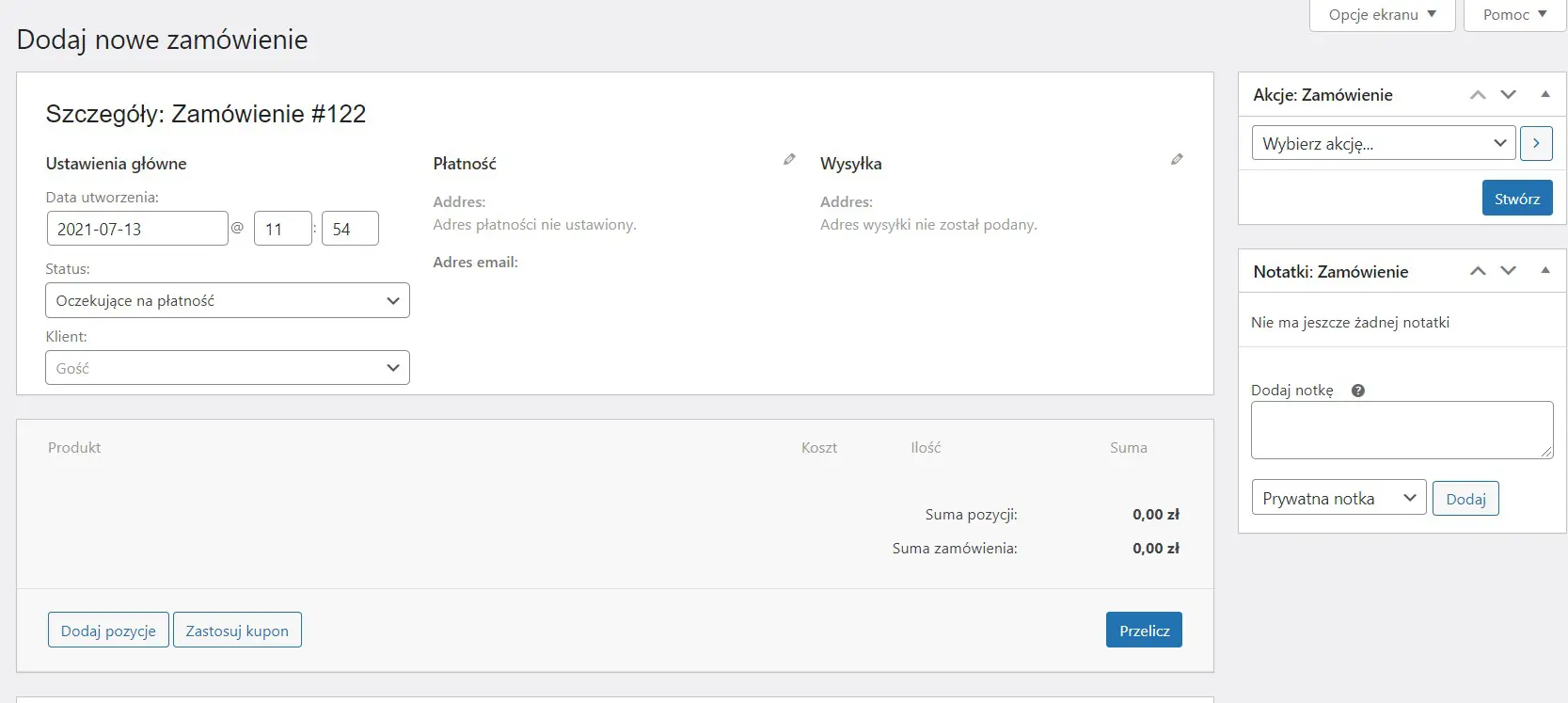 Dodawanie nowego zamówienia WooCommerce