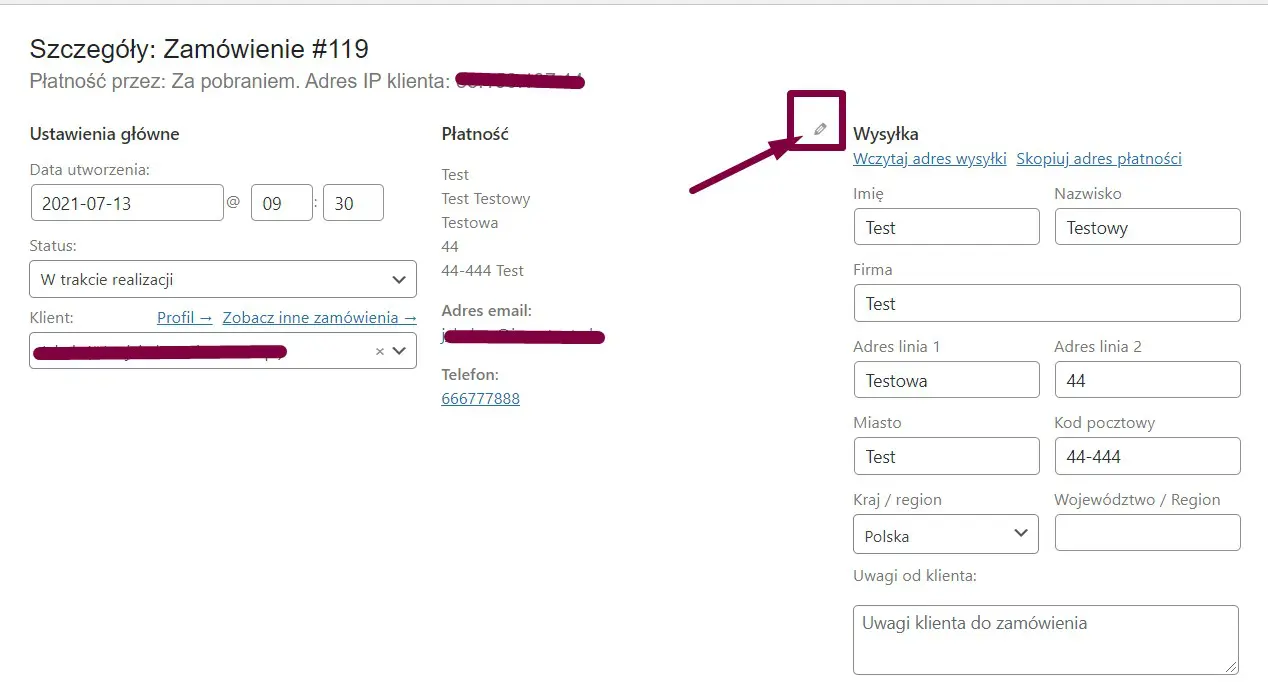 - Edytuj zamówienie WooCommerce