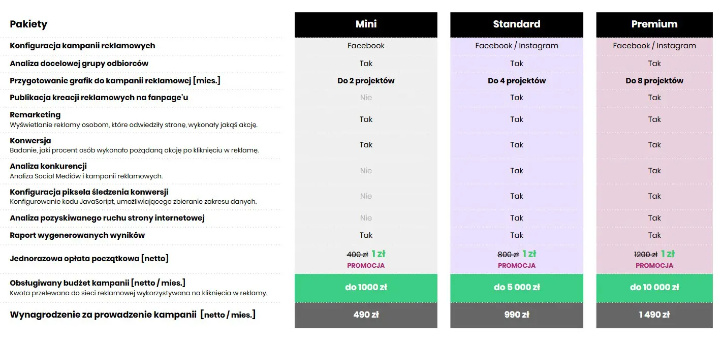 Cennik obsługi reklam Facebook & Instagram